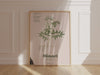 A refined botanical illustration of a vivid green minari plant—leafy stems, exposed roots, and airy umbrella-like blooms—rests on a soft cream field for a calm, modern look.